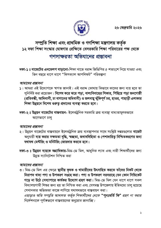CAMPE Presents Reflections and Recommendations on Government’s 12-Point Education Reform Agenda through an organized press briefing on 28 February 2026 at the Jatiya Press Club in Dhaka.